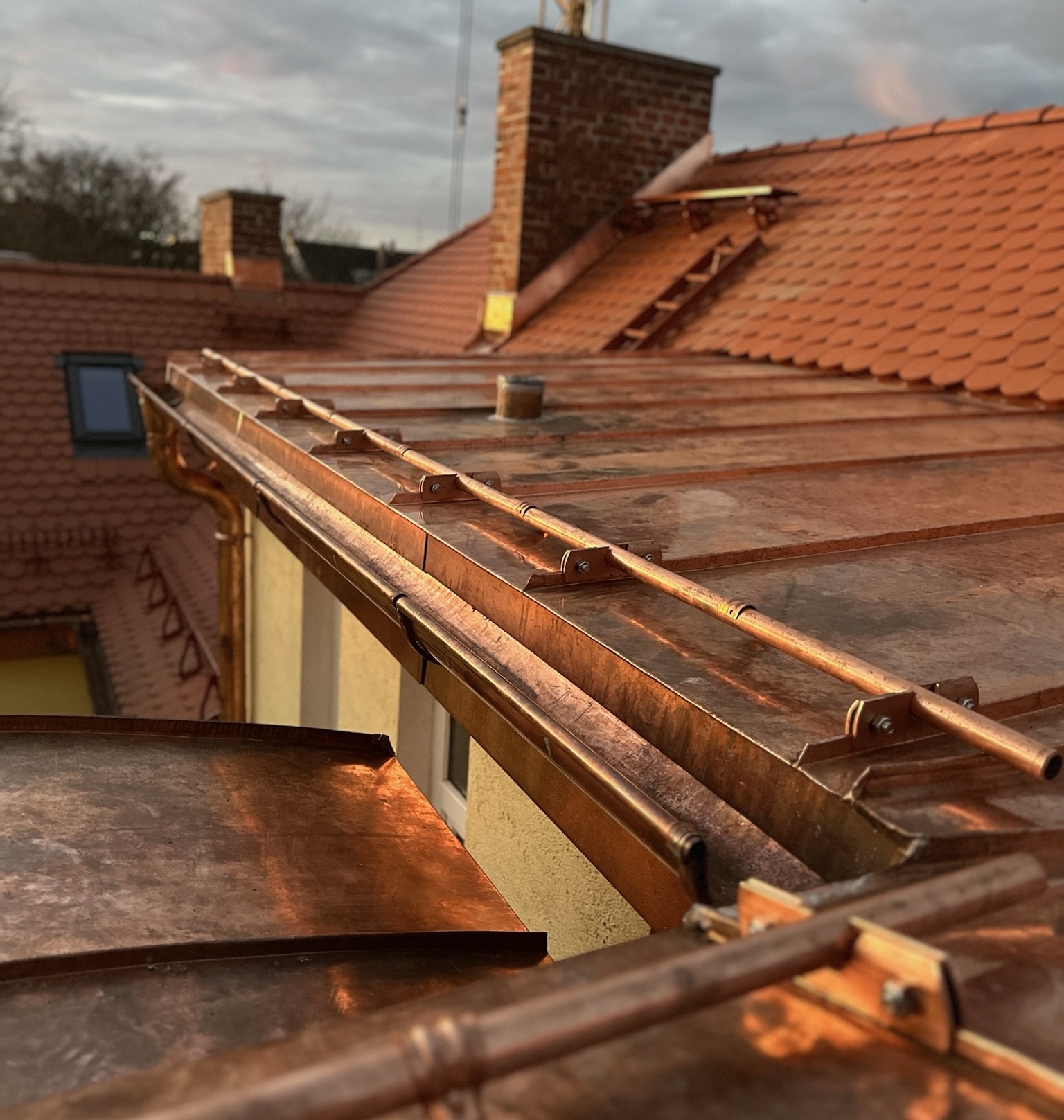In unserem Betrieb sind wir darauf spezialisiert, sämtliche gängigen Metalle wie Kupfer, Titanzink, Aluminium, Edelstahl und Bleibleche zu verarbeiten. Egal, ob du ein großes Industriegebäude, ein Wohnhaus, eine Garage oder sogar einen historischen Kirchturm mit einer klassischen Dachdeckung versehen möchtest – bei uns findest du das nötige Know-how und die langjährige Erfahrung für jedes Projekt.
